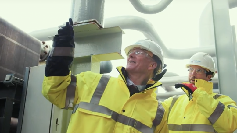 Highview Power CEO Gareth Brett (left) inspects the Pilsworth plant with engineering director Stuart Nelmes. Image: Highview Power/YouTube.